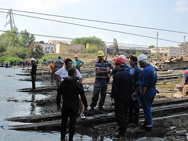 We suggest holding a meeting on site. In view of the shipyard’s suggestion to continue using the trolley, we ask the diver to go down to investigate the water slide: if the slide is in good condition, then using the trolley to go down to the water will be beneficial for both sides: we only need to lift the ship and clean up the broken trolley.